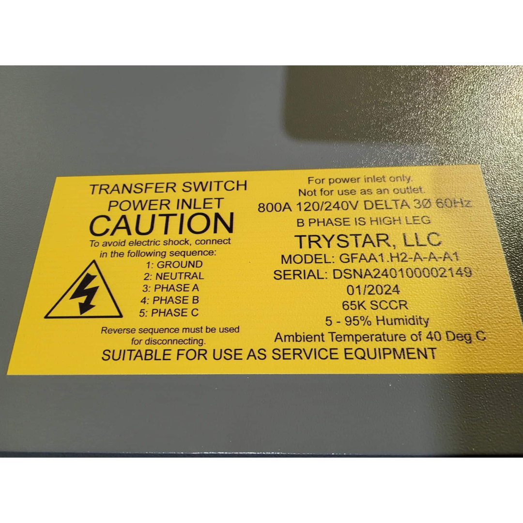 Description: 120/240V Delta 3Ø, 60 Hz, 20A 125V GFCI, 30A 125V No GFCI Protection